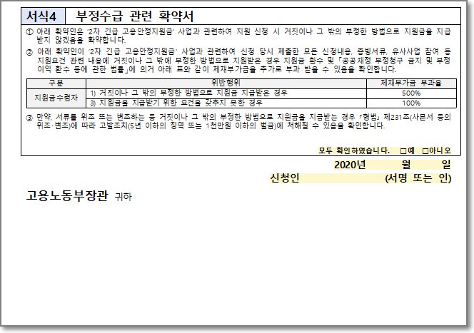 서식 4는 "부정수급 관련 확약서" 입니다.