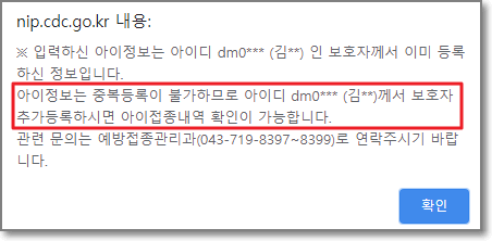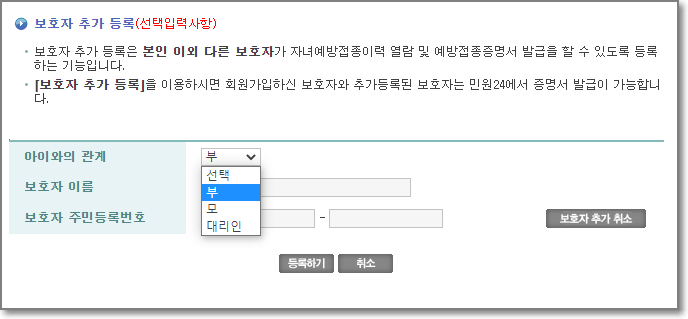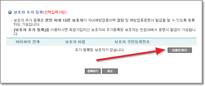 예방접종 도우미 보호자 추가등록