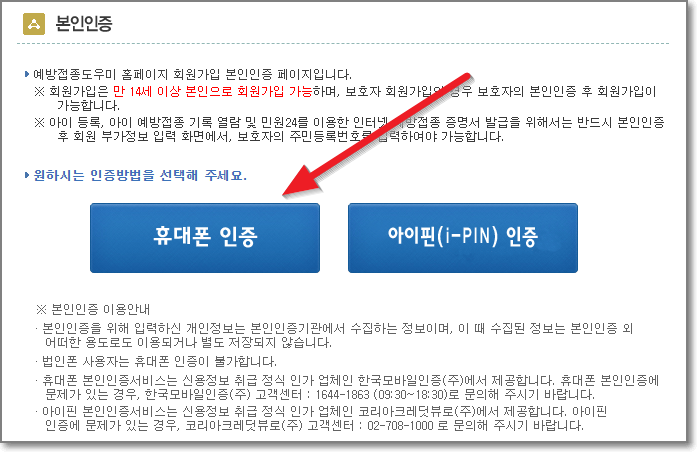 본인인증을 "휴대폰 인증"으로 합니다.(아이핀이 있으시면 아이핀인증으로 하시면 됩니다.)