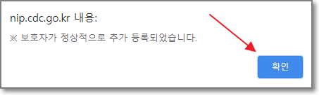 "보호자가 정상적으로 추가 등록되었습니다" 라고 나옵니다. "확인"을 누릅니다.