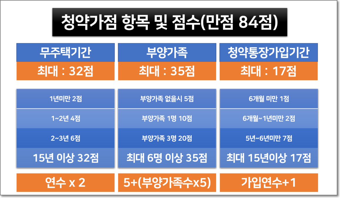 바로 무주택기간과 부양가족 그리고 청양통장 가입기간입니다.