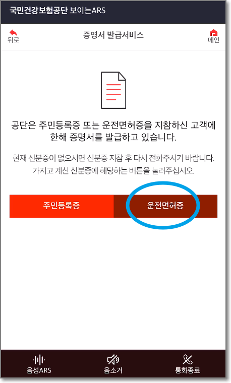 자격득실확인서 및 보험료 납부확인서 발급서비스에서 "개인 납부확인서" 또는 "증명서 통합발급(자격득실확인서 및 납부확인서)"를 터치합니다. 여기서는 "개인 납부확인서"를 터치하겠습니다. 그리고 신분증은 "운전면허증"을 선택하겠습니다.