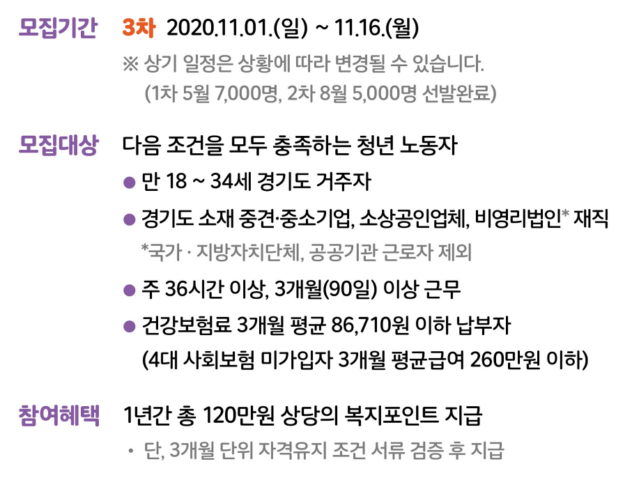 이상으로 경기도 청년 복지포인트 3차 모집의 기간, 방법, 대상자 그리고 신청하는 방법에 대해서 알아보았습니다.