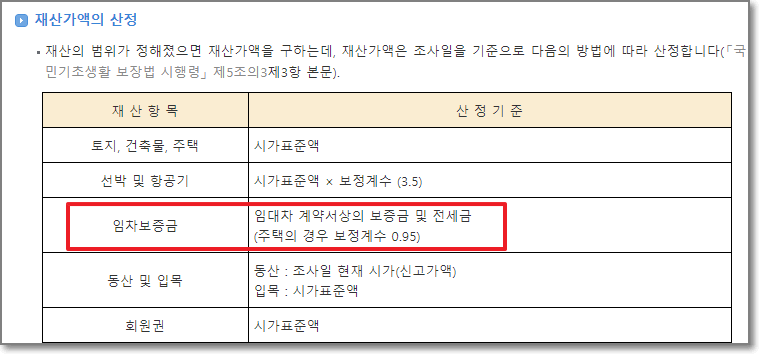하지만 고급자동차(3000씨씨 이상 또는 4천만원이상)가 더 문제가 되는 것은 보유하는 것만으로도 기본재산공제 대상에서 제외가 되고, 월 100%의 소득환산율을 적용합니다.
