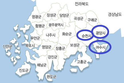 파주, 천안(동남구, 서북구), 논산, 공주, 전주(완산구, 덕진구), 창원(성산구), 포항(남구) 경산, 여수, 광양, 순천 까지 11개시 13개 지역