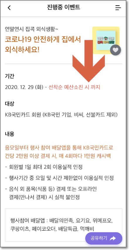 네번째, 배달앱의 간편결제는 응모카드와 연결되어 있는 경우에 한해서 실적으로 인정가능 합니다.