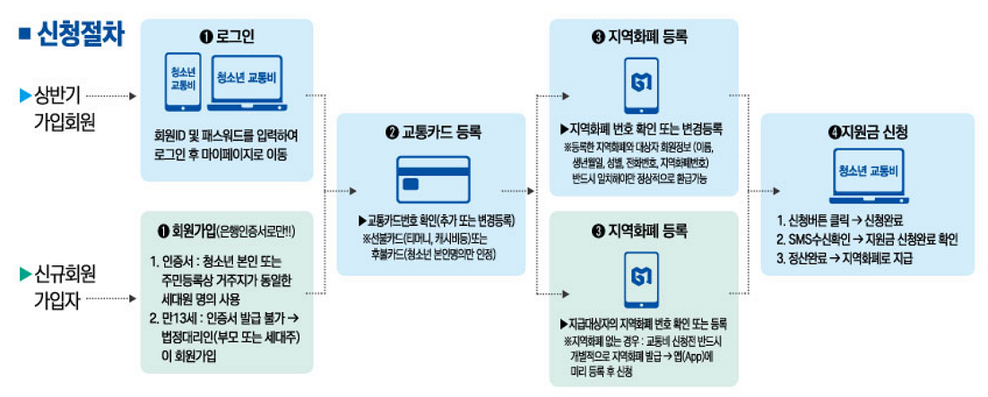 ★ 유의사항 : 교통비를 신청하기 전에 반드시 지역화폐를 개별적으로 발급받아 휴대폰에 등록해야 합니다.