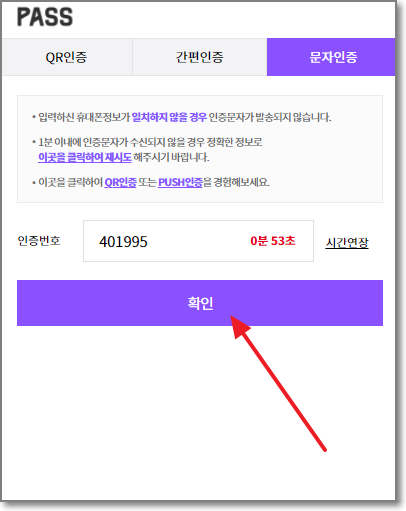 그 번호를 아래의 창에 입력하고 "확인"을 누릅니다.