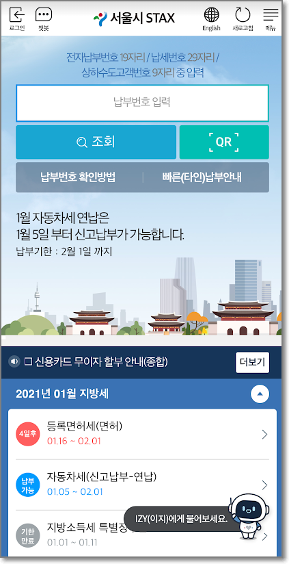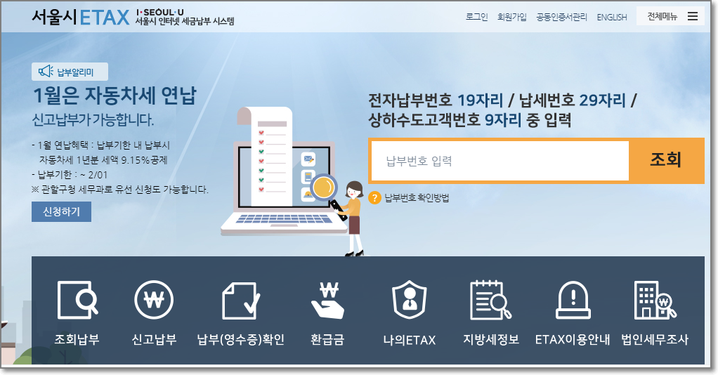 첫번째는 전화를 이용하는 것입니다. 본인이 거주하는 구청이나 시청등에 전화를 해서 신청하는 방법입니다. 다산콜센터120번으로 전화하셔도 되고요. 전화해서 신청하면 본인확인하고 납부계좌를 주는데, 그 납부계좌로 이체하셔도 됩니다.