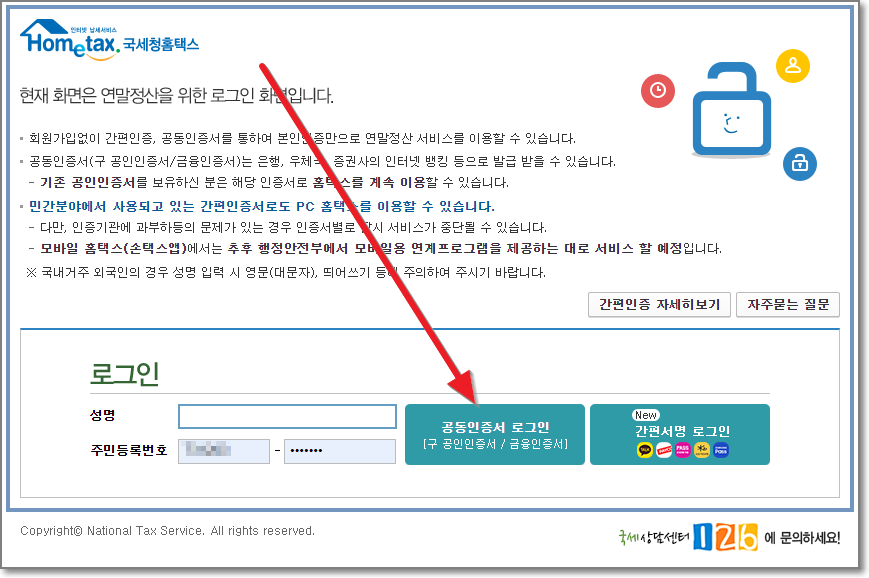 로그인하라고 나올텐데요. 공인인증서 아니죠 이젠 공동인증서가 있으면 편하시고요. 만약에 없으시면 21년부터 새로 도입된 간편서명 로그인으로 하시면 됩니다.