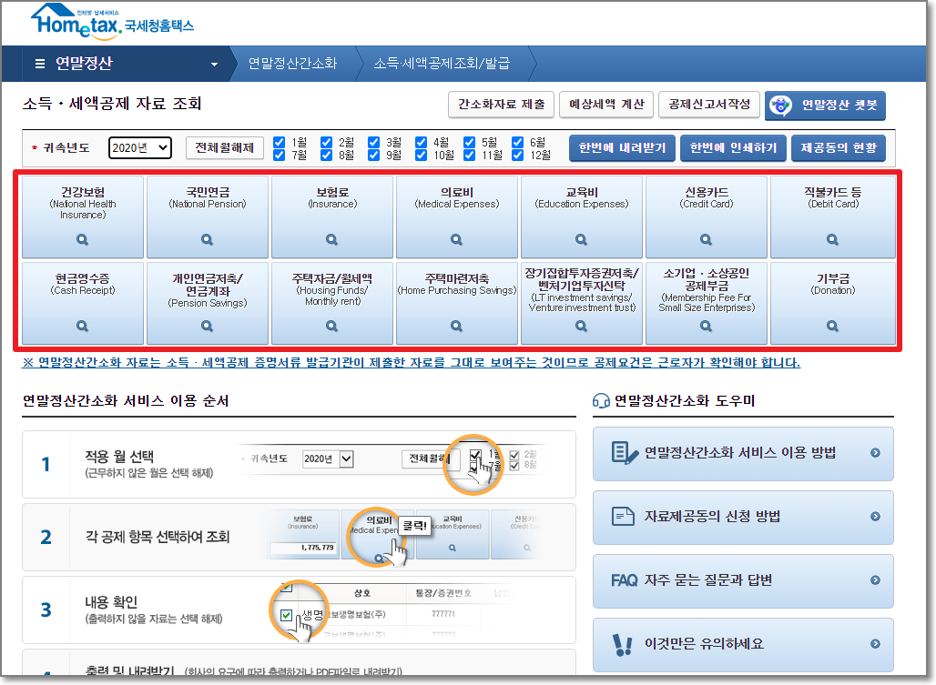 연말정산 간소화 이용시 유의사항
