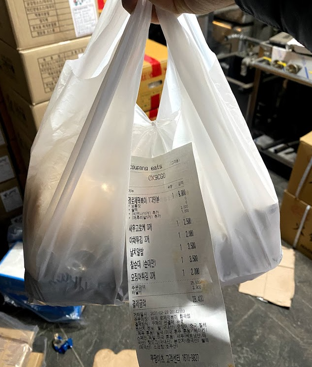이런 생각을 하면서 마지막 배달만 하고 집에 가야겠다는 생각을 하면서 로제떡뽂이를 받아 들고 배달을 한다음에 배달앱을 끄고 집으로 갔습니다.
