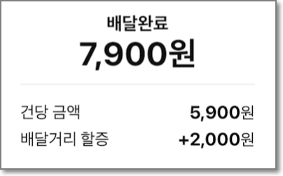 한번은 1번 배달에 7900원짜리가 떠서 잡고 배달을 완료했습니다. 차로 가는 것이고 야간 시간대여서 교통체증 없이 수월하게 배달은 끝났습니다.