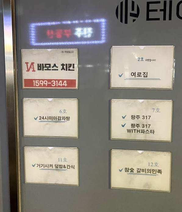 출입문은 영업을 하는 시간에도 열리지 않고 빨간 박스 쳐놓은 창문만 열리고 음식을 배달원에게 주는 방식이었습니다. 그런데 며칠 더 배달을 하다보니 이번에는 정말 전문화된 음식점을 발견할 수 있었는데요.