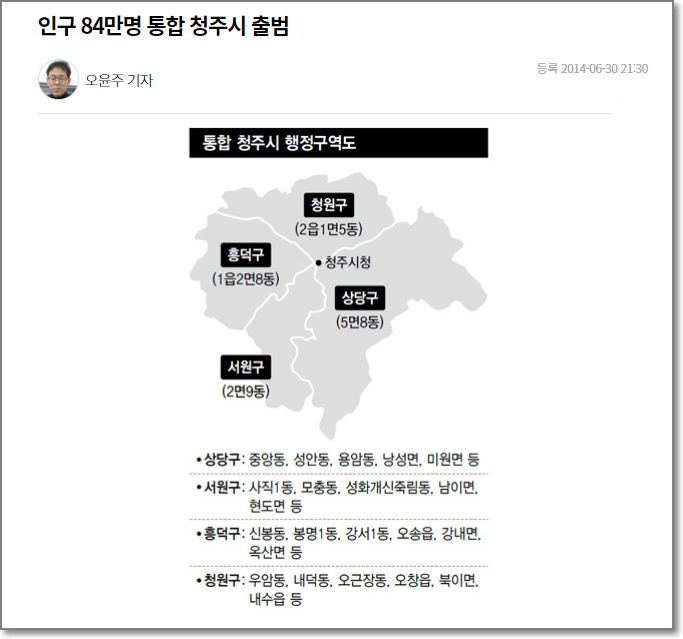 청주시는 2014년7월1일을 기점으로 기존 청주시와 청원군이 통합을 하여 면적이 940.3㎢가 되었습니다.