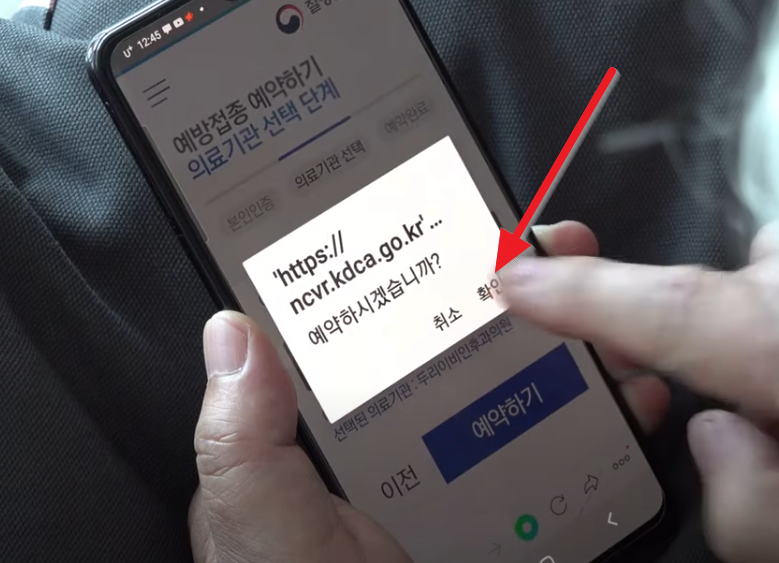 한번 더 "예약하시겠습니까"라고 물어보는데요. "확인"을 누르면 "예방접종 예약하기 예약이 완료되었습니다"라고 나옵니다.