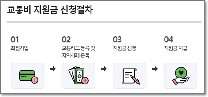 신청할 수 있는 방법은 인터넷 홈페이지를 통해서 가능한데요. [경기도 청소년 교통비 지원 포털]을 이용하시면 됩니다. 가장 먼저 회원가입을 진행한 후에 현재 사용하고 있는 교통카드를 등록해야 하는데요. 다만 후불식 교통카드의 경우 지원대상인 청소년 본인의 명의여야만 지원이 가능합니다. 그리고 지역화폐를 신청한 후에 지원금은 신청하면 됩니다.