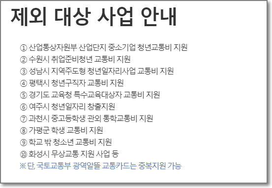 하지만 경기도 청소년 교통비를 지원해주는 다른 사업에 선정이 되었다면 중복해서 지급을 받을 수는 없습니다. 예를 들어 수원시에서 지원하는[취업준비 청년 교통비 지원]을 통해서 지원을 받았다면 오늘 알려드린 지원을 받으실 수 없는데요. 각 지자체별로 중복 여부를 잘 따져보시고 지원을 해주시면 될 것 같습니다.