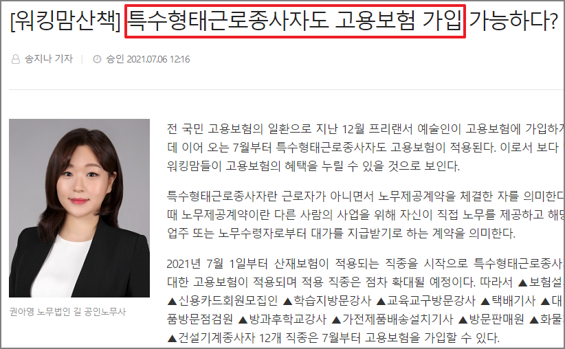 특수형태 근로종사자 고용보험 시행