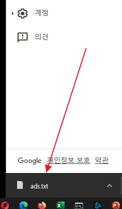 그러면 크롬에서 왼쪽 하단에도 다운로드된 ads.txt 가 표시됩니다.