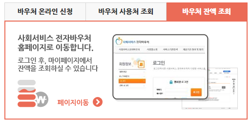 국민행복카드 홈페이지를 통해 확인하실 수 있는데요. 홈페이지에 접속 후에 [바우처 잔액조회]를 클릭하시면 로그인 후 손쉽게 확인하실 수 있습니다.