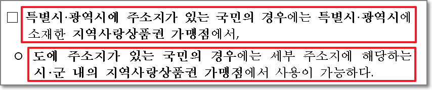 간혹 경상북도 울진군에 거주하는데 경상북도 전체에서 쓸 수 있지 않느냐고 생각하시는 분들이 있는데요. 만약 울진군에 거주하신다면 경상북도 전체가 아닌 울진군 내에서만 재난지원금을 사용하실 수 있습니다.