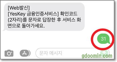 7. 휴대폰으로 온 문자에 "31"(매번 다릅니다.)로 답장.