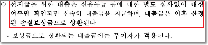 다. "손실 보상금"으로 상환되는 대출금은 무이자 적용입니다.