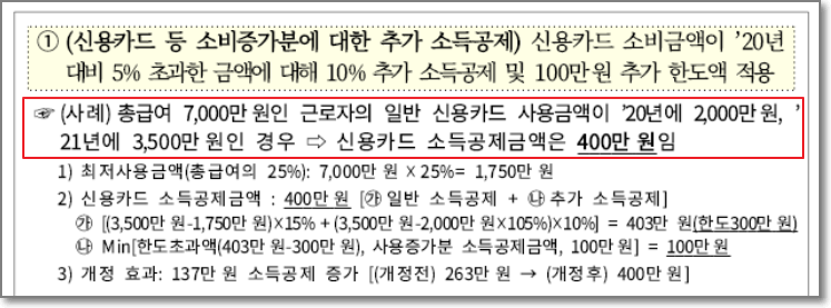 | 전통시장, 대중교통, 도서구입 등 사용분에 대해서는 추가 100만원 한도 적용 | ||