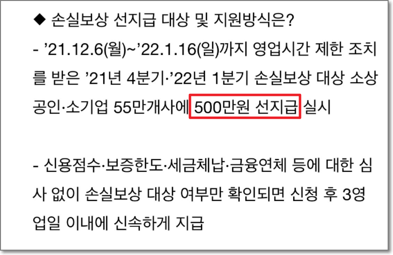 소상공인 손실보상금 선지급 신청방법 및 대상