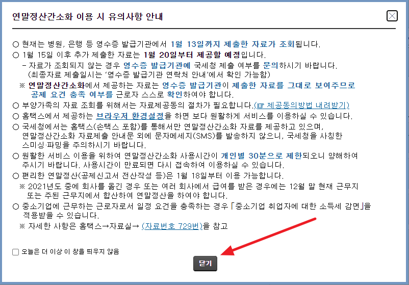 유의사항이 나오면 "닫기"를 누릅니다.
