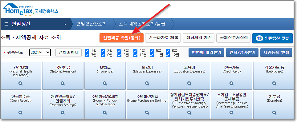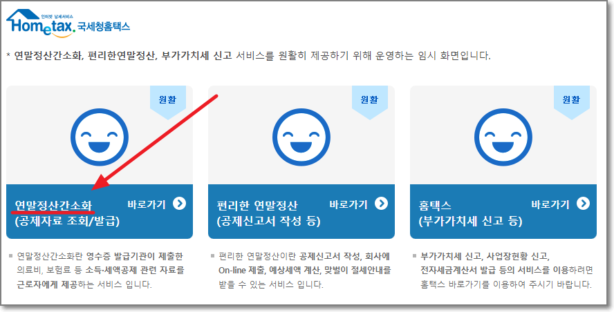여기서 "연말정산간소화"를 누릅니다.