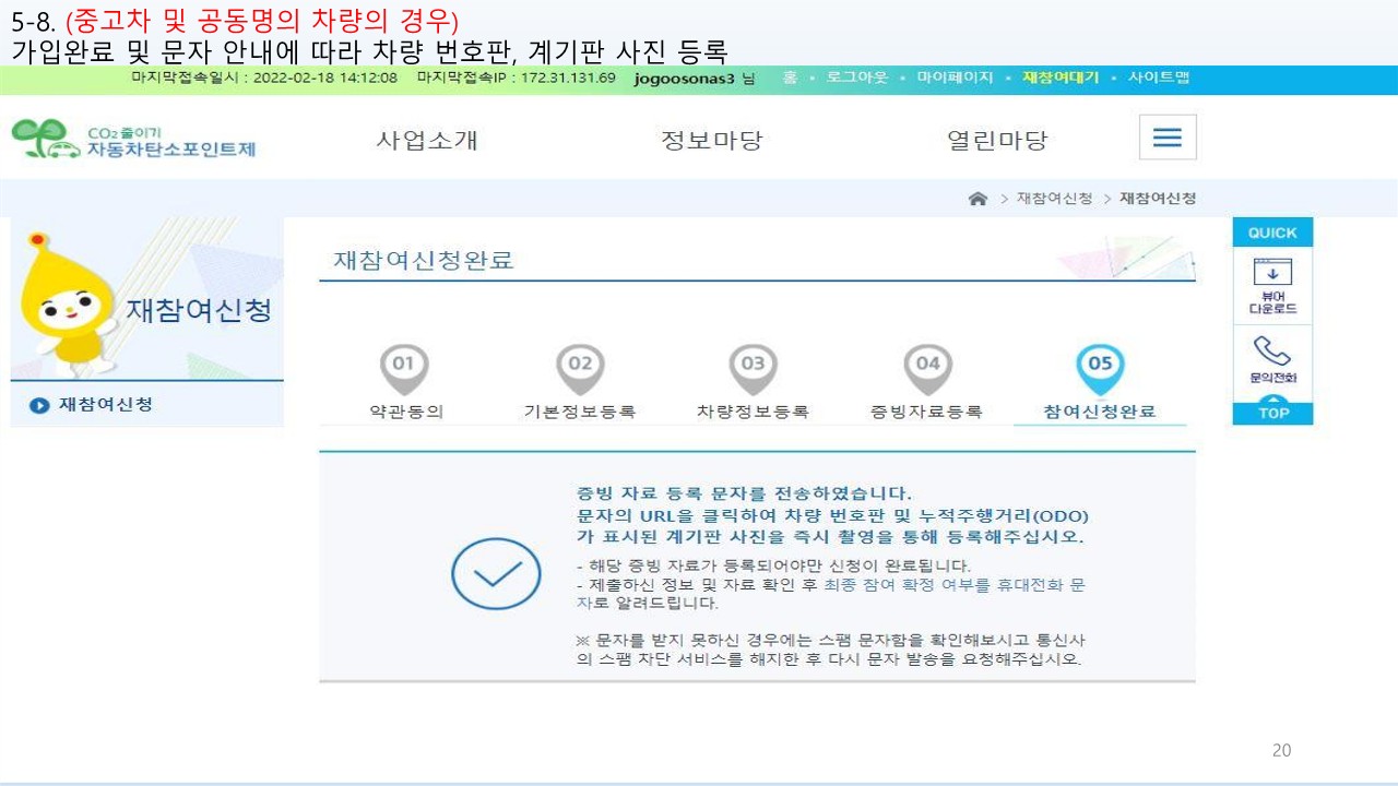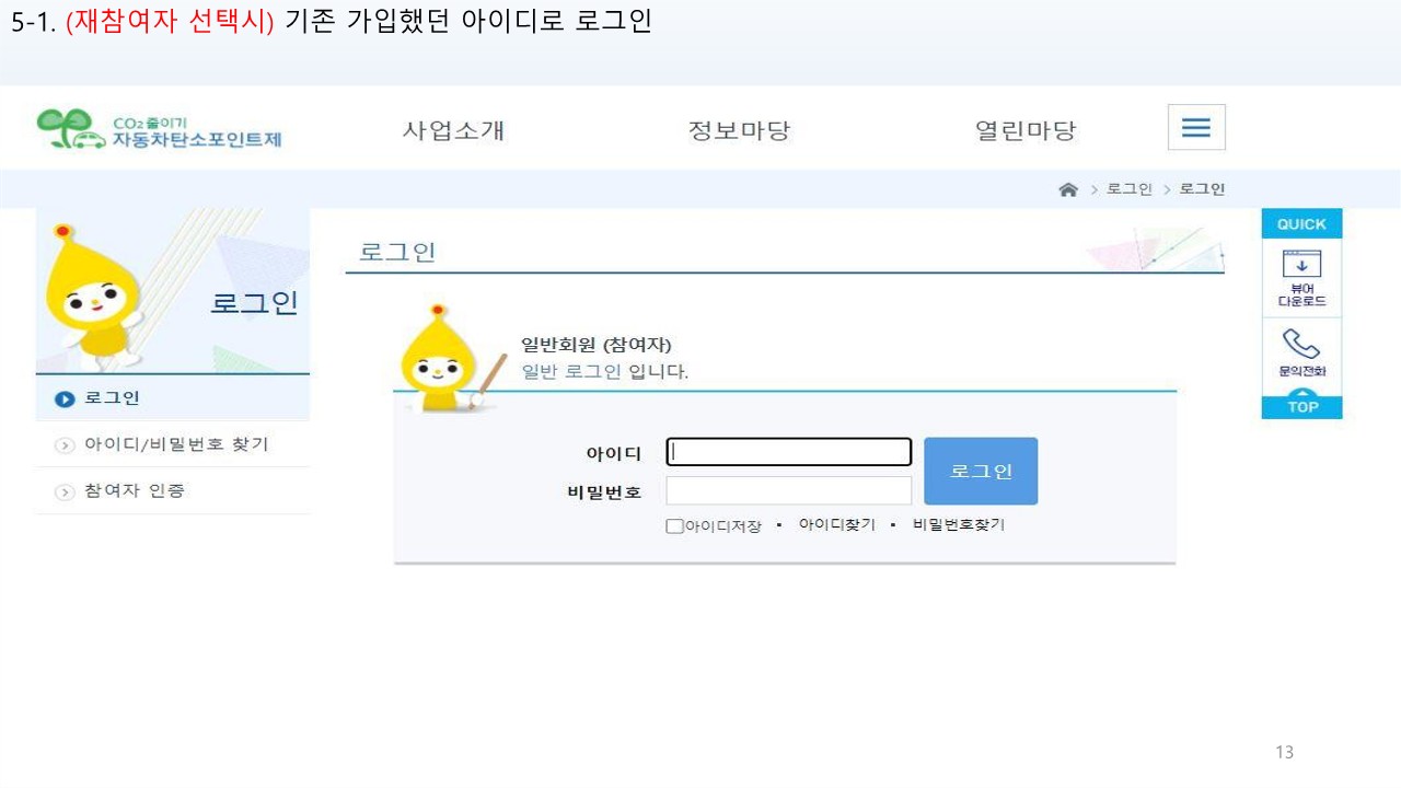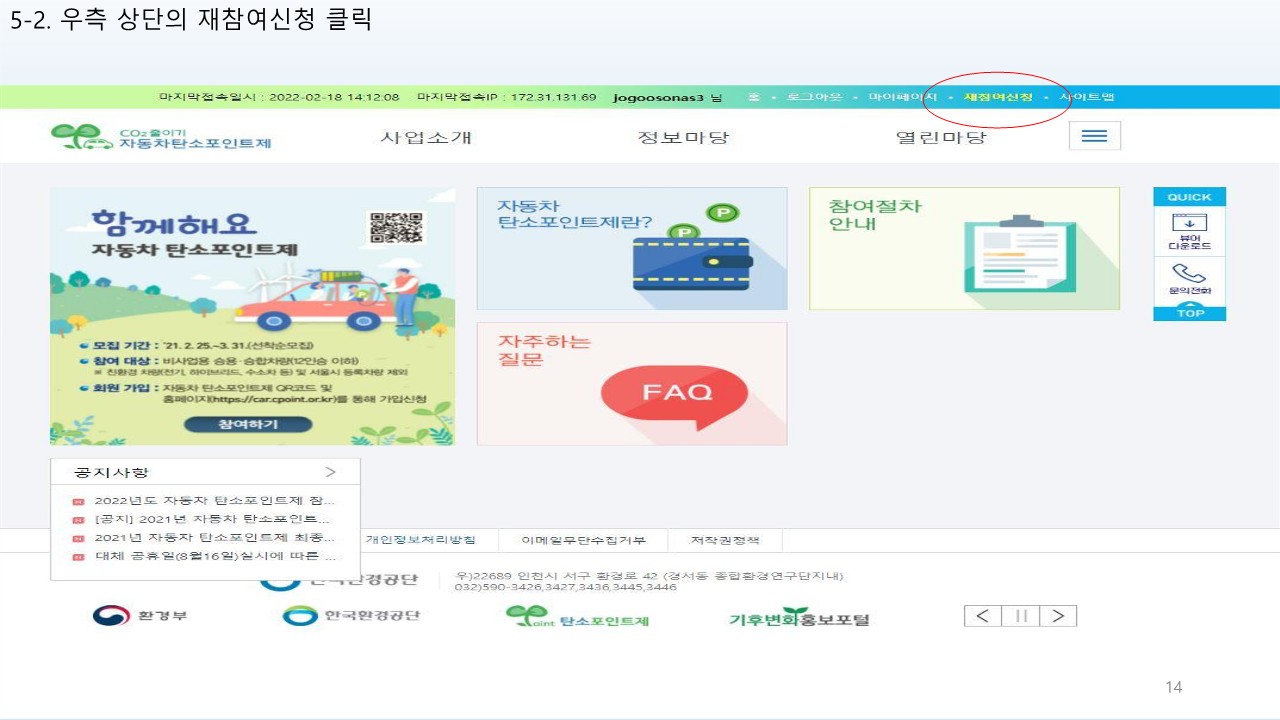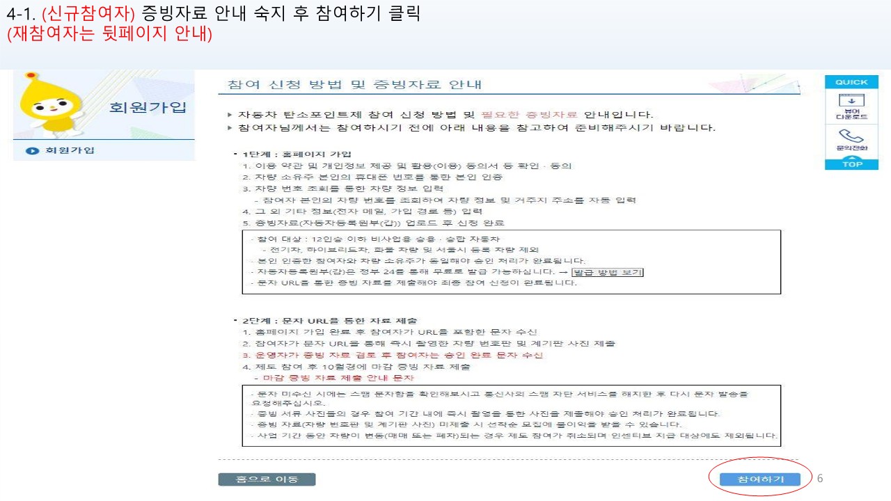 이전에 참여한적이 있으면 재참여자로, 올해 처음 참여하면 신규참여자를 클릭합니다.