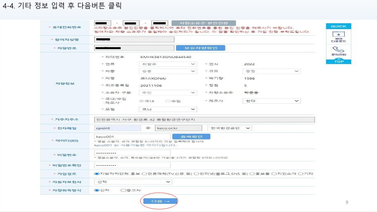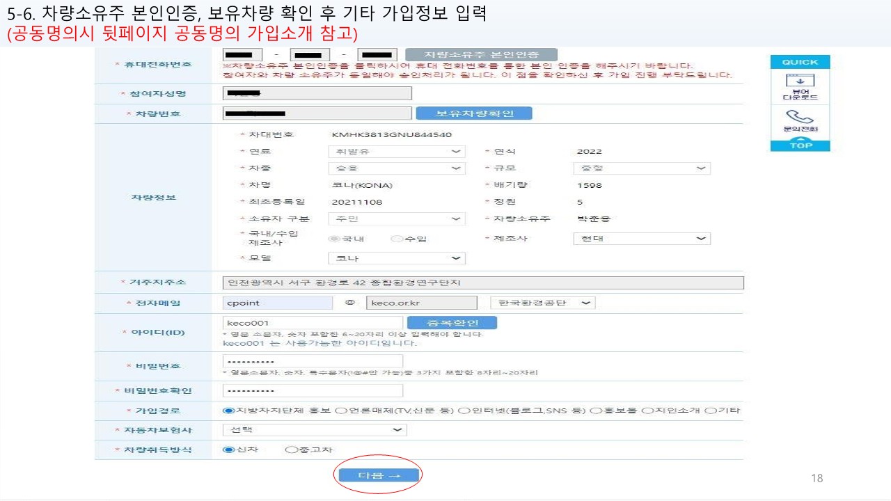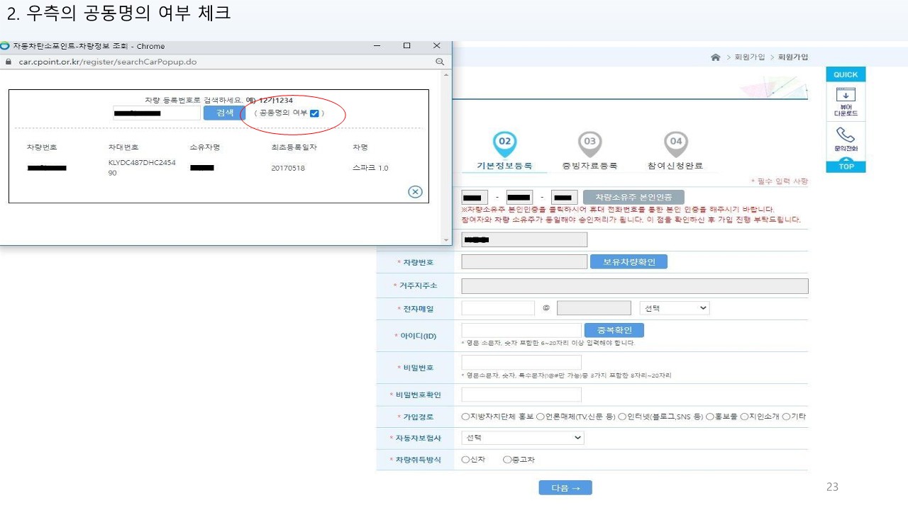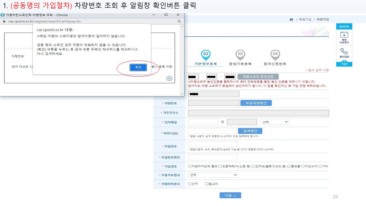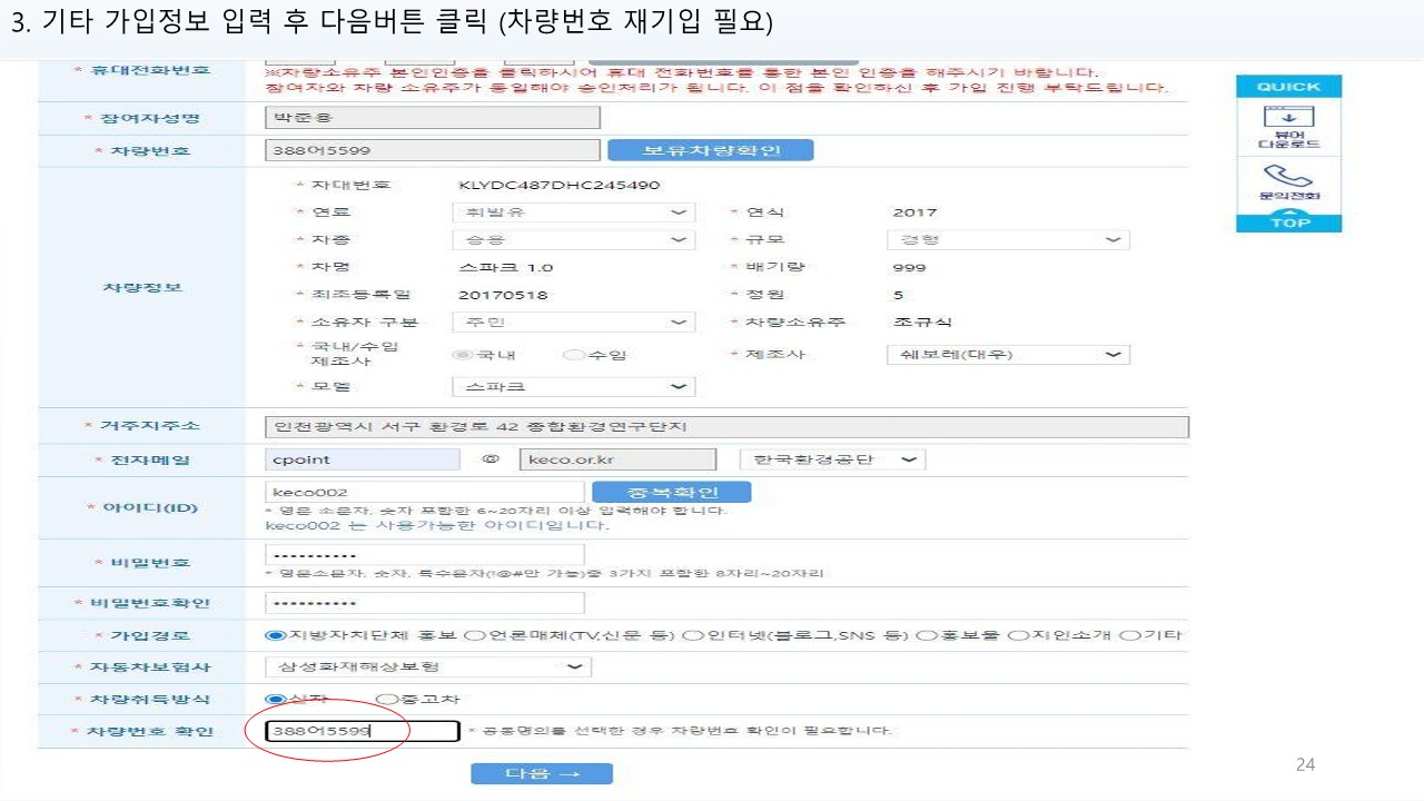 - 가입시 자동차 소유주 명의로 가입하여야 하며, 대리가입 불가