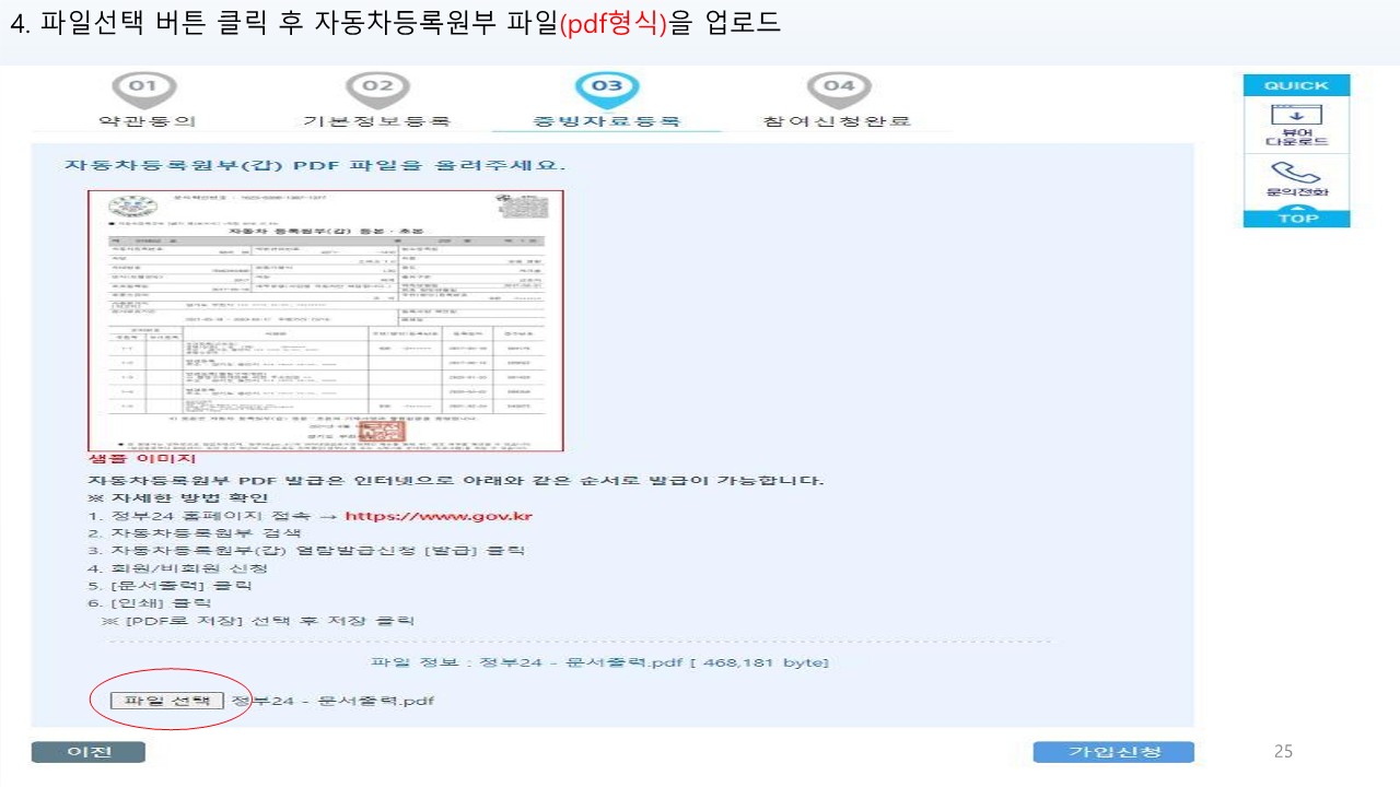 - 자동차등록원부 제출은 중고차 및 공동명의 차량에 한하며, 신차의 경우 제출 불필요