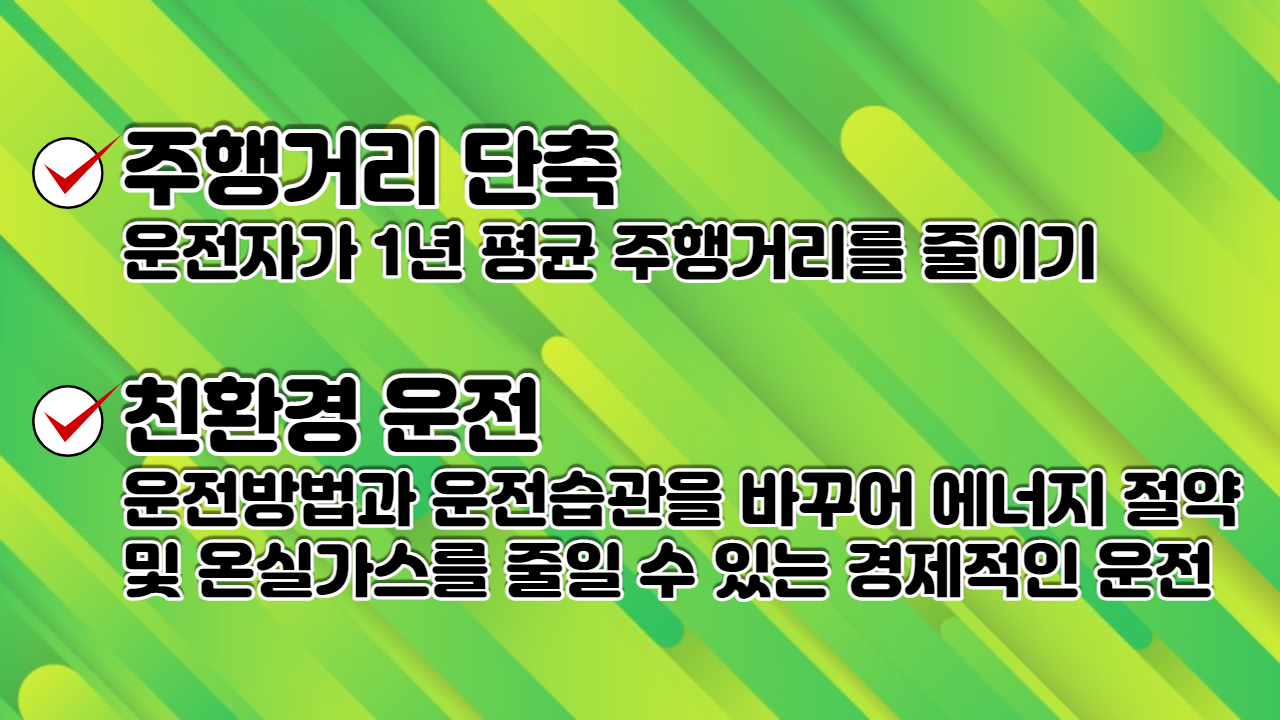 주행거리를 줄일경우 퍼센트나 거리에 의해서 산정을 하는데요. 기존 일평균 주행거리보다 약 8개월간 주행한 사업참여 일평균 거리가 줄었을 경우 인센티브를 지급합니다.