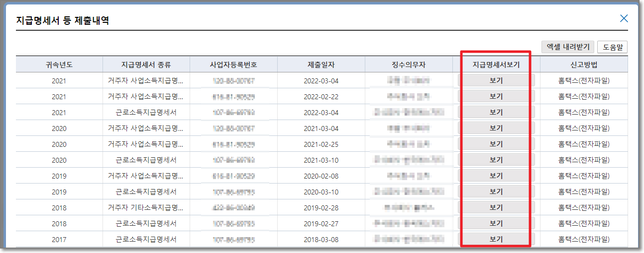 3. 지급명세서 등 제출내역 확인하기