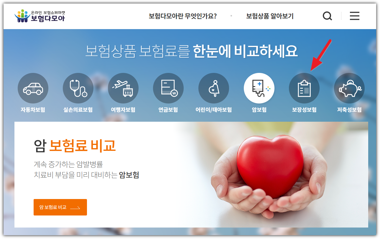 많은분들이 보험 가입 시 이용하는 보험다모아 사이트를 알아보겠습니다. 이 사이트에서는 여러 종류의 보험을 한눈에 비교, 파악하기 쉬우며, 저렴한 가격으로 가입할 수 있습니다.