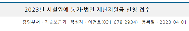 2023년 시설원예 농가·법인 재난지원금 신청 접수