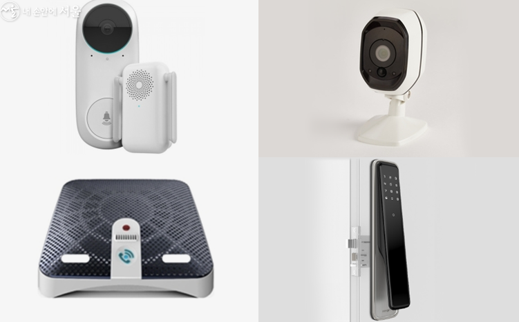 시가 직접 지정한 '1인 가구 안심 홈 세트' 필수 2종은 귀가 전후 휴대폰으로 현관 상황을 실시간 확인할 수 있는 '스마트 초인종'과 외출했을 때 집안 상황을 확인할 수 있는 '가정용 CCTV'입니다. 자치구별로 필수 2종에 더해 지원 물품을 추가로 제공받을 수 있습니다.