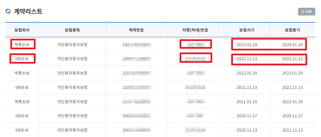 날짜와 차량번호를 보면 현재 내차 보험사 찾기를 쉽게 하실 수 있습니다.