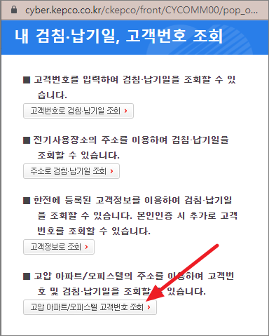 '고압 아파트/오피스텔 고객번호 조회'로 해야 합니다.