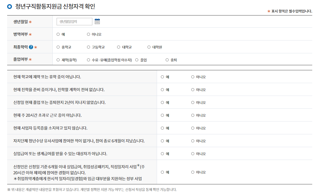 그리고 내가 과연 해당이 되는지를 온라인에서 직접 체크를 해봄으로서 알 수 있는 신청자격 확인 페이지가 있습니다.