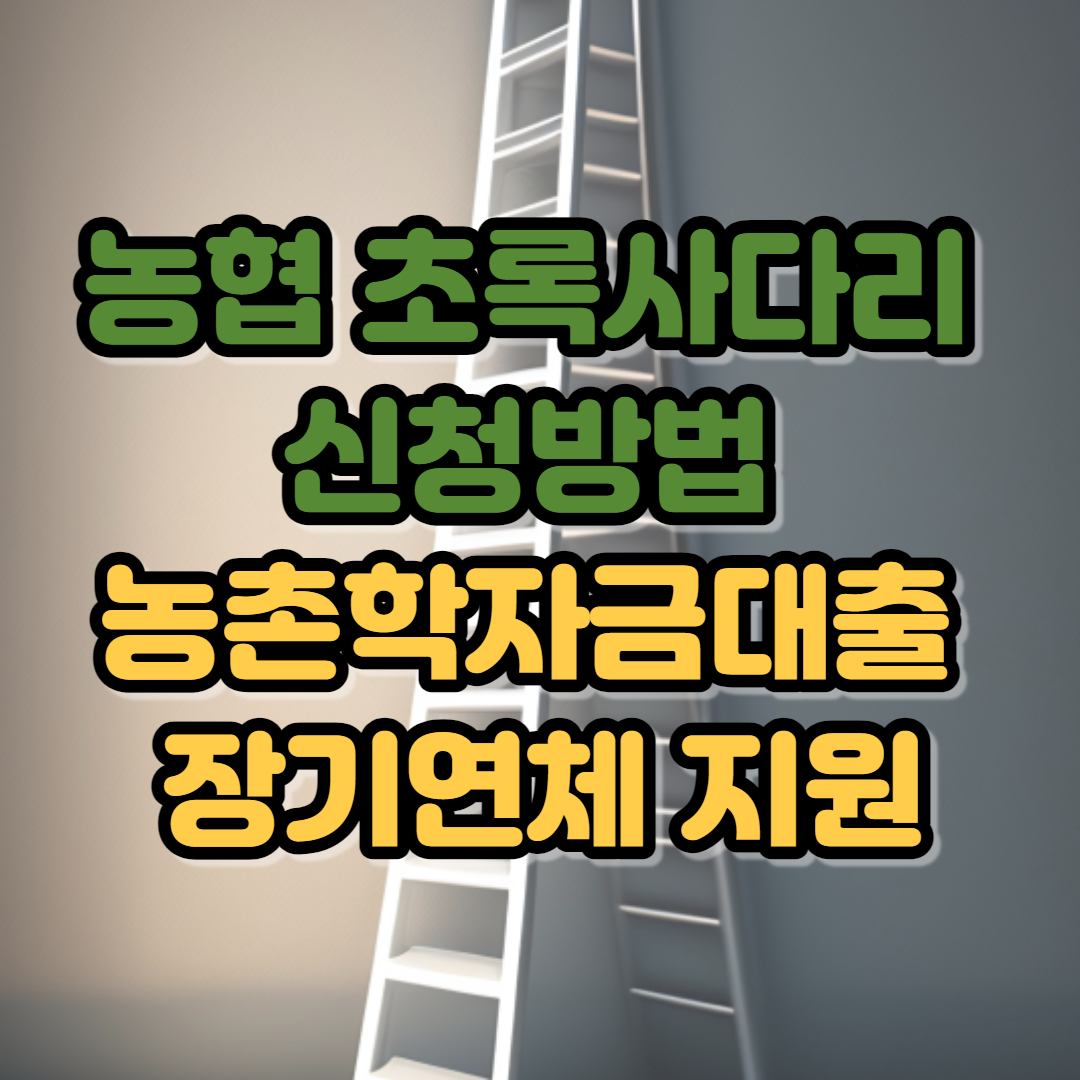 2023년 NH농협은행 초록사다리 신용지원사업은 NH농협은행 기부금을 활용하여 재단 분할상환약정 후 성실 상환 중인 농촌출신 대학생 학자금융자(농어촌학자금대출) 장기연체고객의 조기상환을 지원하고 신용회복을 돕는 제도인데요. 자세하게 알아보도록 하겠습니다.