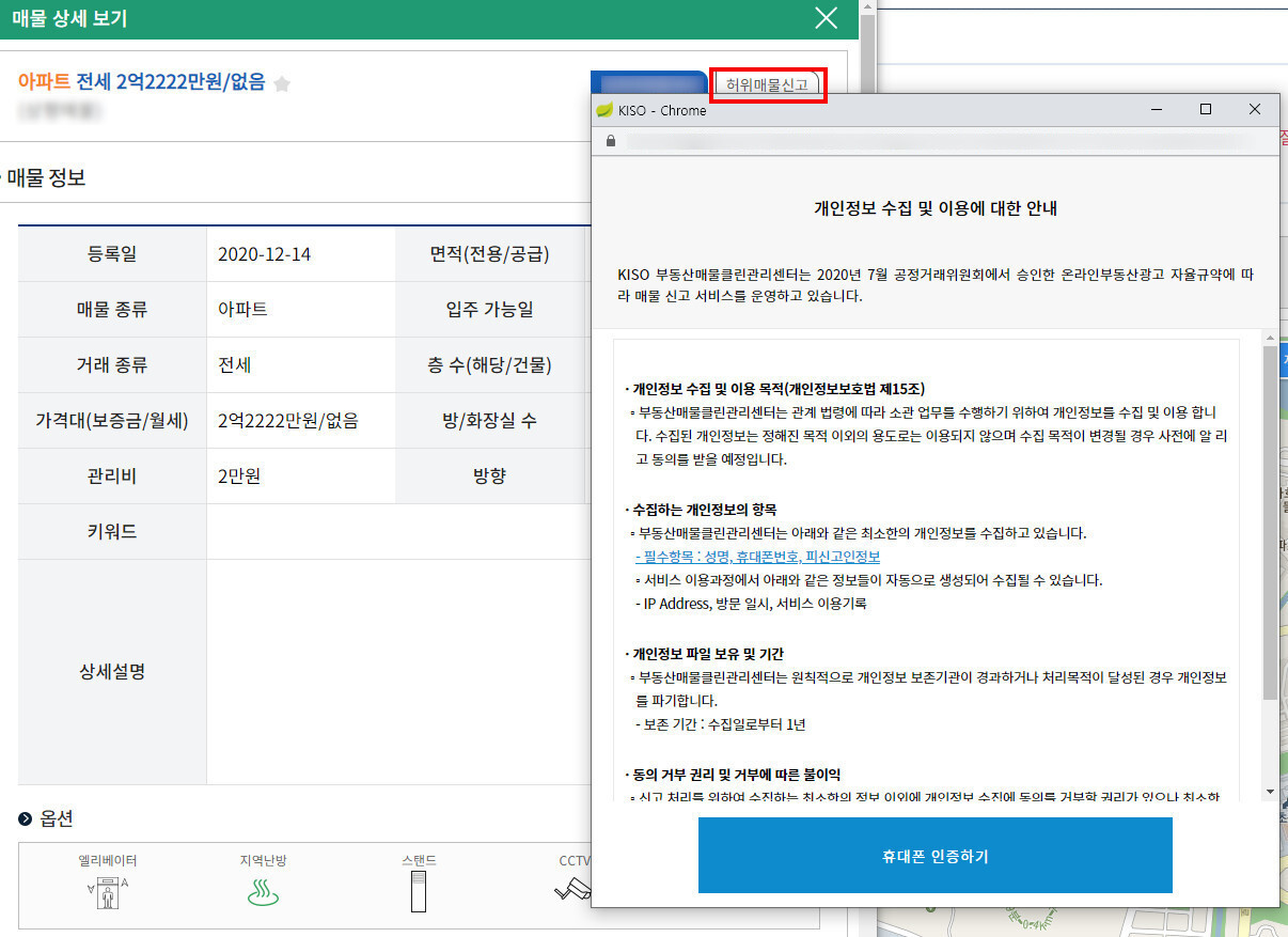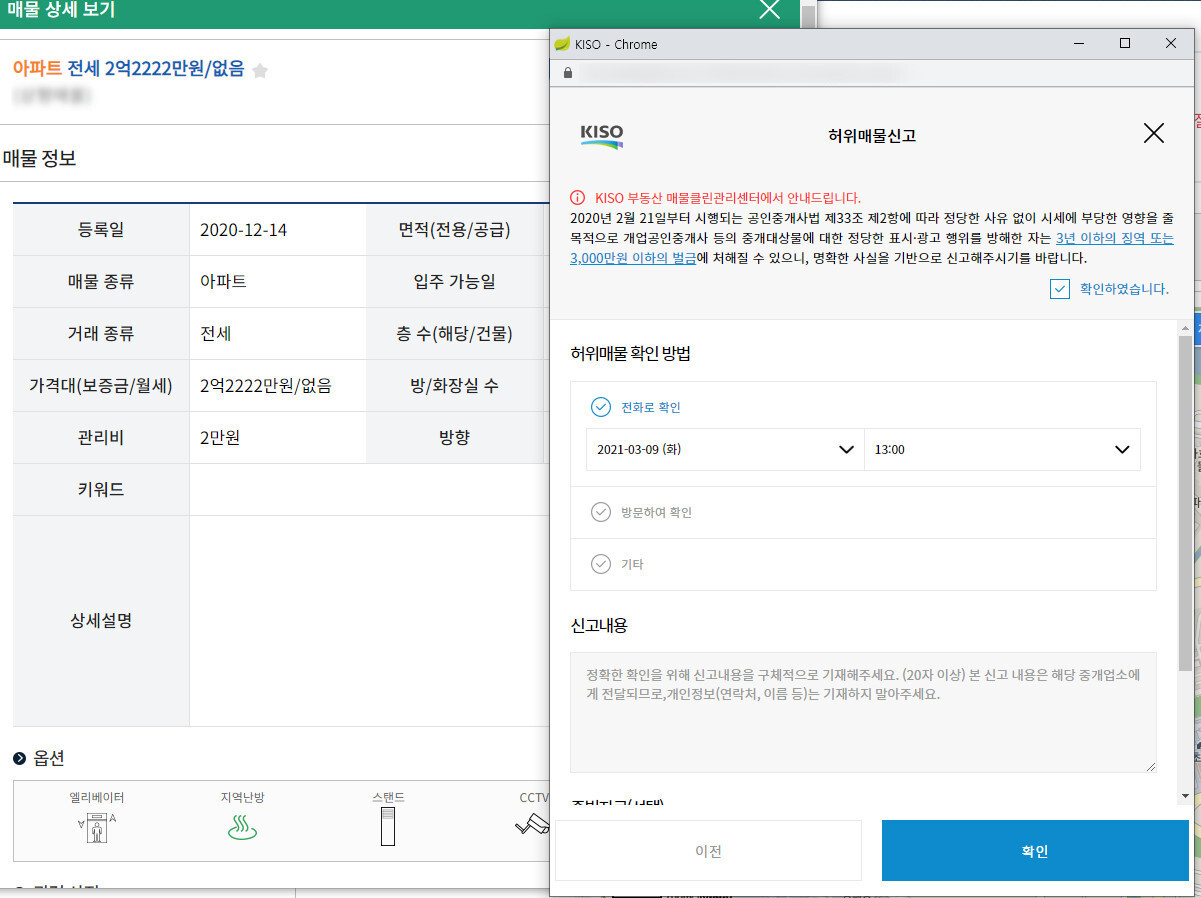 4.동의확인, 허위매물 확인방법, 신고내용(필수), 증빙자료(선택)