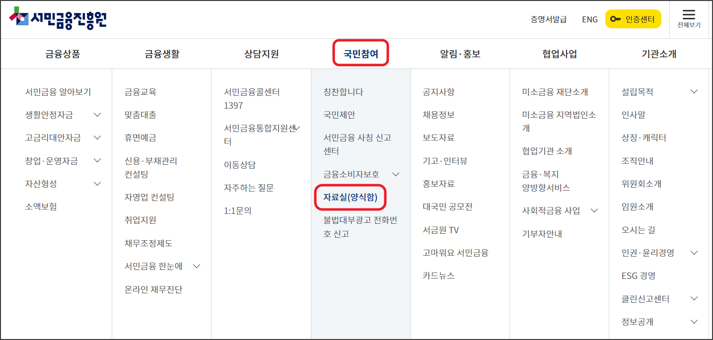 | 구비서류 | 센터 방문ㆍ대출상담 시 ①신분증, ②대출금 수령용 본인명의 예금통장 사본 필요. 본인명의 예금통장 이용이 어려운 경우 자세한 구비서류는 센터 방문 전에 서민금융콜센터(☎1397) 확인 필요 |