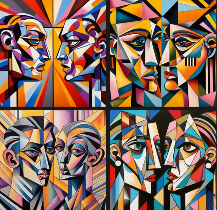 이번에는 '피카소 풍의 남자와 여자가 있는 인물화'라고 입력해보았습니다.