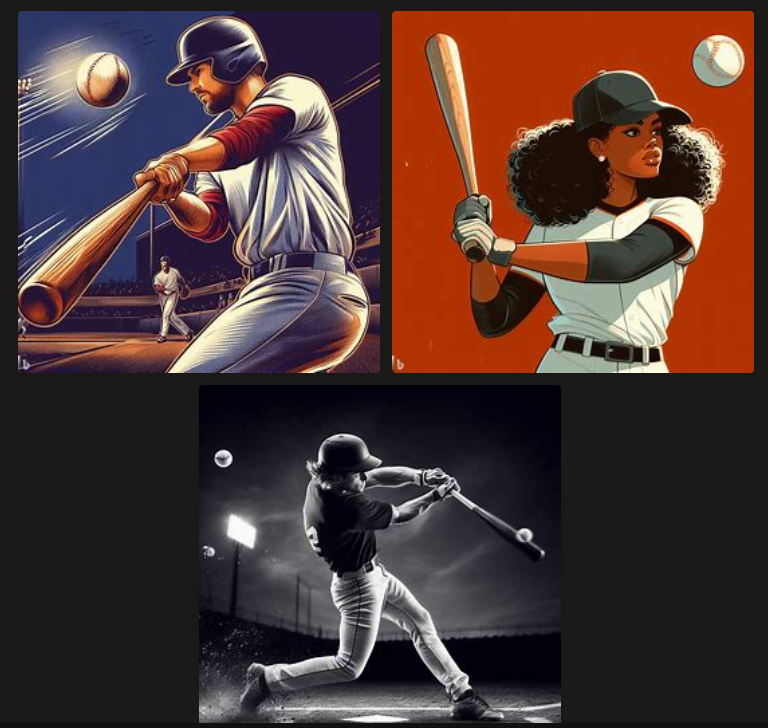 아래는 '배트를 휘두르는 야구선수'를 그려달라고 한 것입니다.
