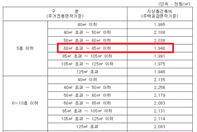 분양가 상한제 계산의 기초가되는 요인 중 '기본형 건축비'는 매년 2회(3월1일, 9월15일), 물가와 공사비 증감요인에 따라 수정하여 다시 고시합니다. 2022년 9월에는 기본형 건축비가 2.53% 인상되었는데요. 이로 인해서 ㎡당 건축비 상한 금액이 194만6천원으로 조정되었습니다.(5층이하 60~85 ㎡ 이하 지상층 기준).