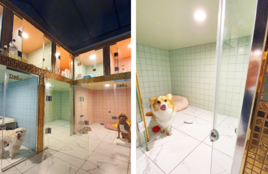 애견호텔은 김포공항에서 차량으로 30여분 거리의 인천 영종도에 위치하고 있으며 4000㎡의 부지에 55개의 객실과 6개의 실내·외 놀이터, 수영장 등 대규모 시설을 갖추고 있고 반려견 개별 맞춤형 산책 및 운동 프로그램 등을 제공한다고 합니다.